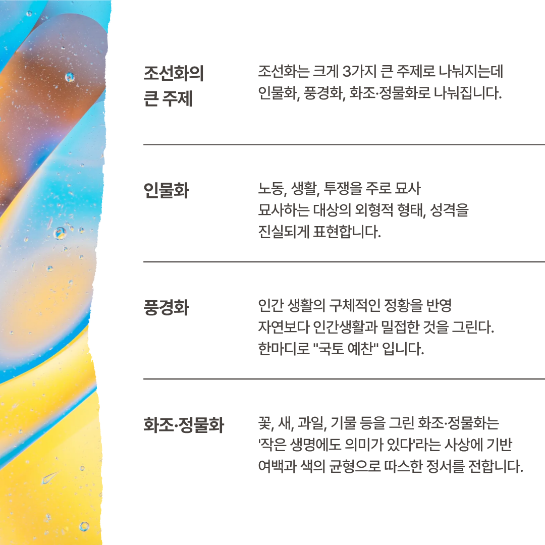 그중에서도 조선화는 선명하면서도 간결하고 섬세한 화법으로