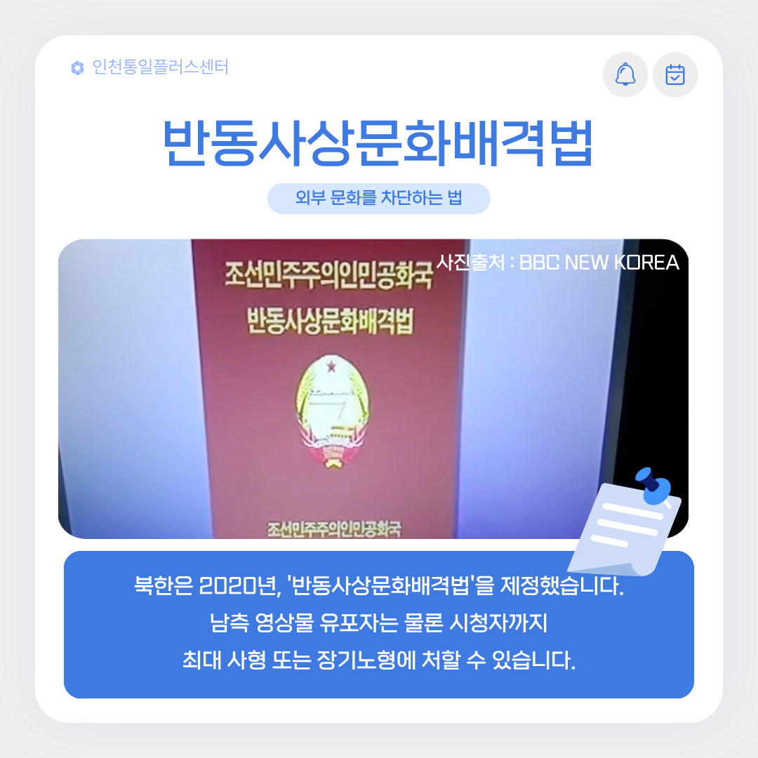 북한은 2020년 반동사상문화배격법을 제정하여
