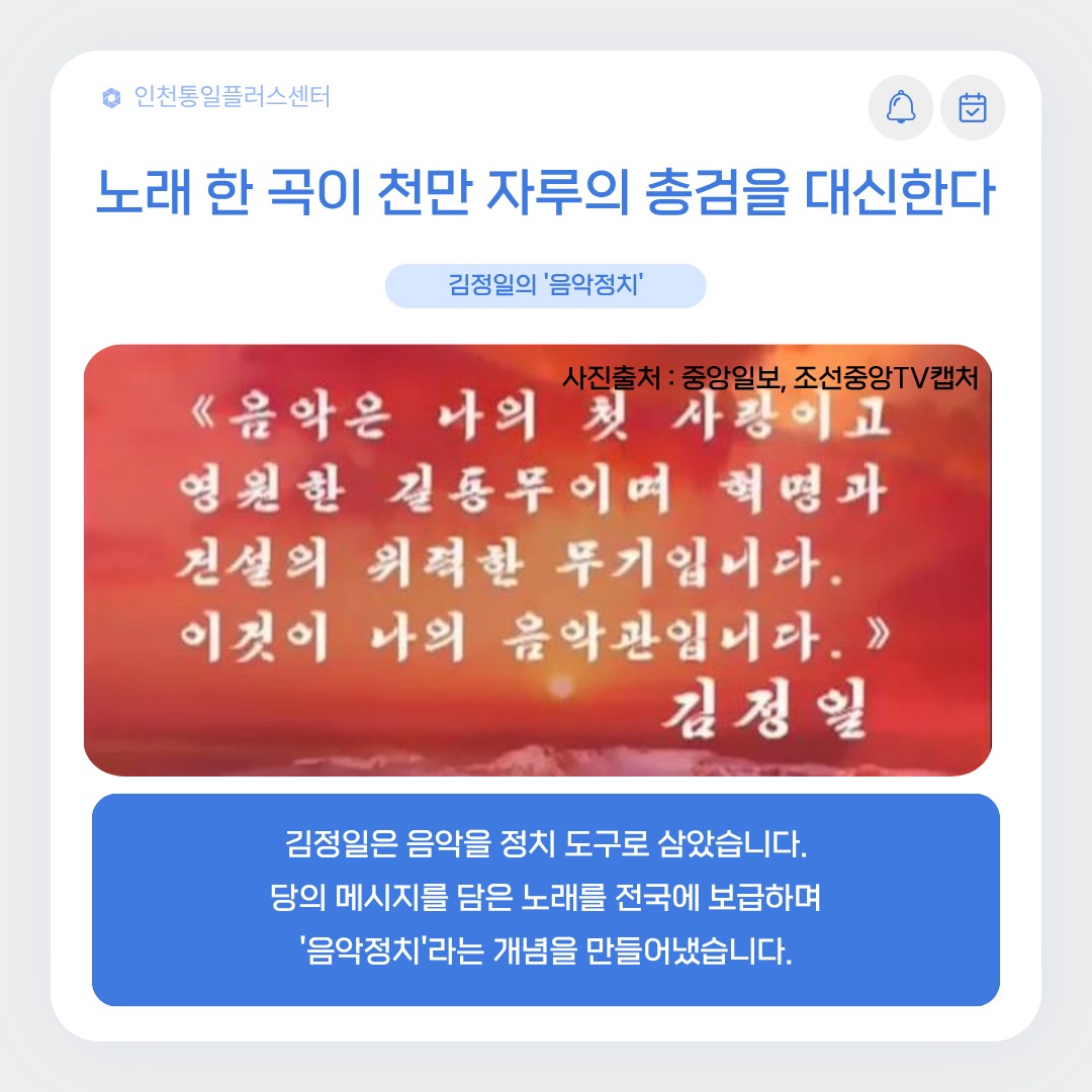 이번 포스팅에서는 '노래로 통치하는 나라, 북한의 음악'을