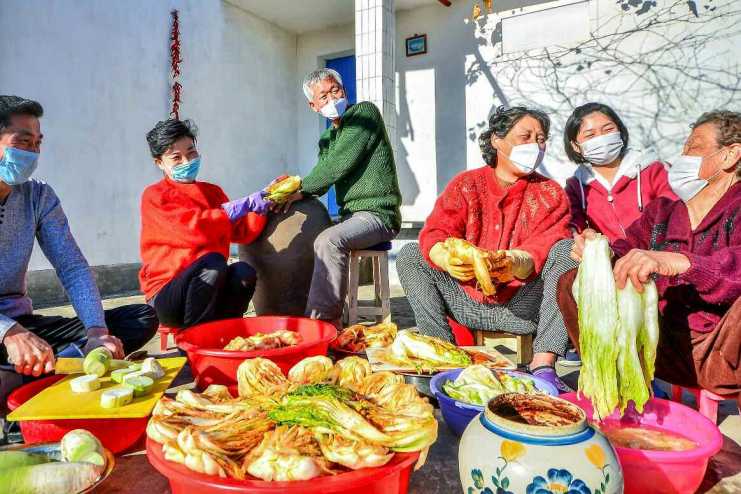 남성들도 휴가를 신청해 김치를 담그고, 배추를 운반하는 등