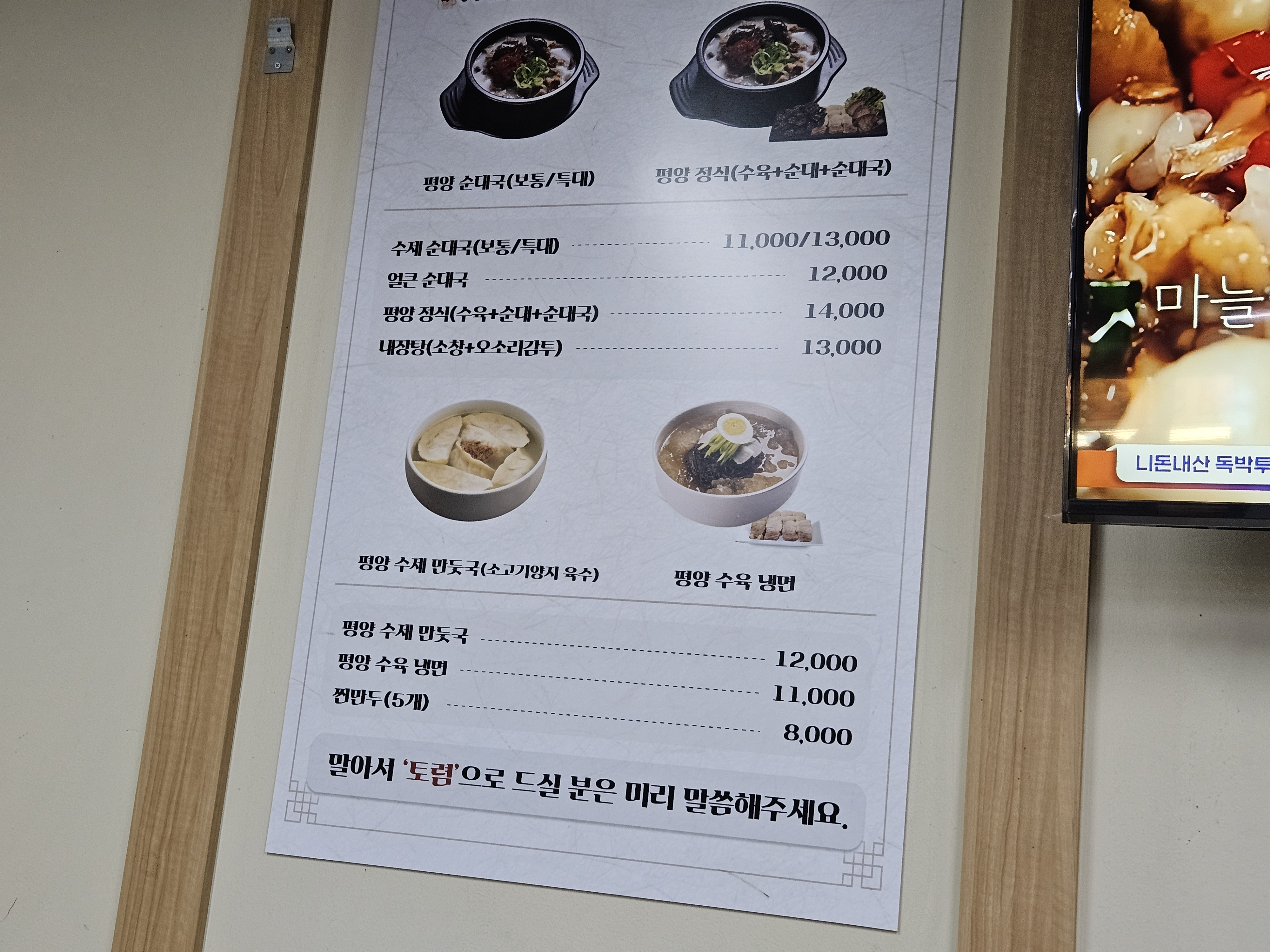 메뉴판에서부터 "평양" 순대국은 물론
