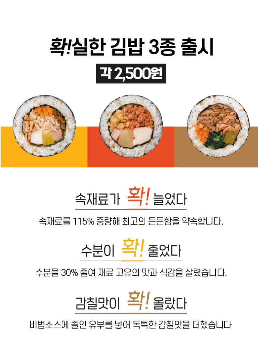 확!실한김밥과 다른 편의점 김밥의 차별점