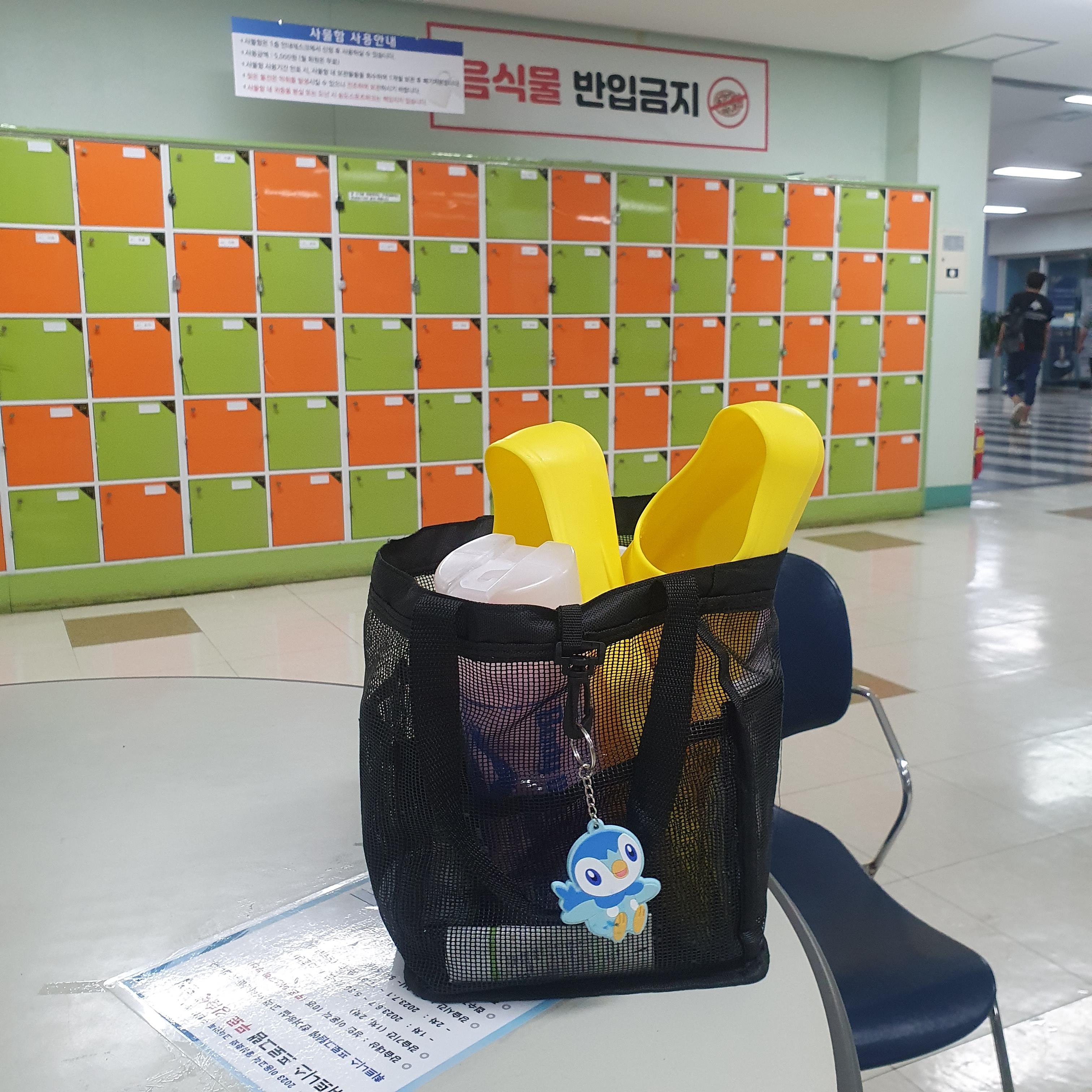 그래도 귀여워서 + 제 수영가방인 것을 확인하는 용도로 사용하고 있습니다.