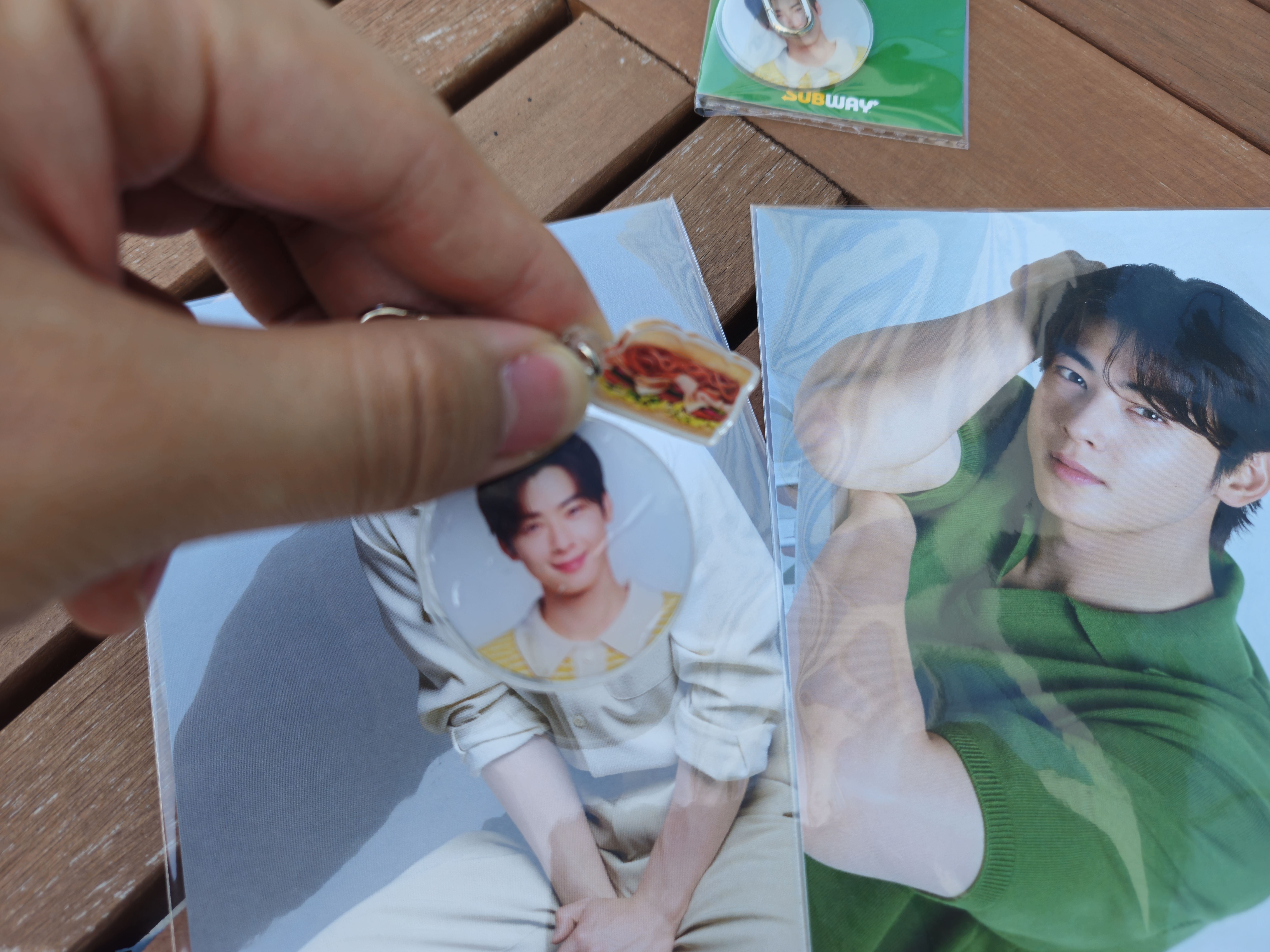 차은우 키링은 앞 뒷면 동일한 사진이고, 함께 서브웨이 샌드위치 키링이 함께 붙어있어요!